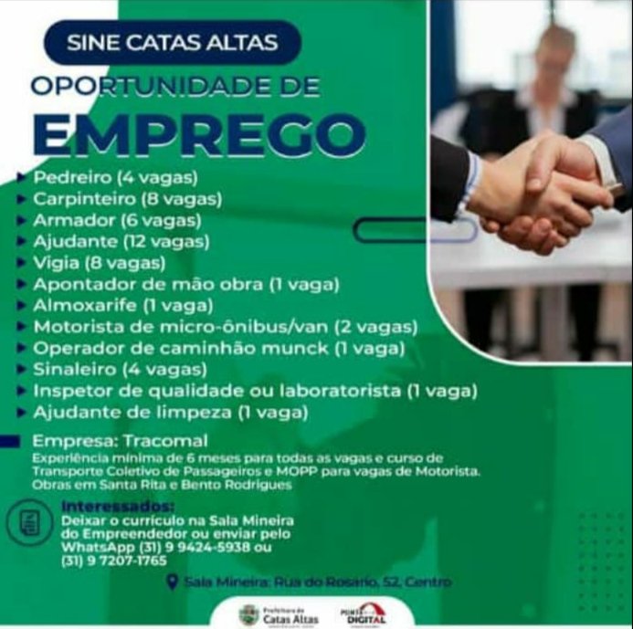 Médio Piracicaba Vagas de emprego SINE Catas Altas MG Boa sorte aos candidatos 28 de junho de 2022 portaldomediopiracicaba@gmail.com Redação
