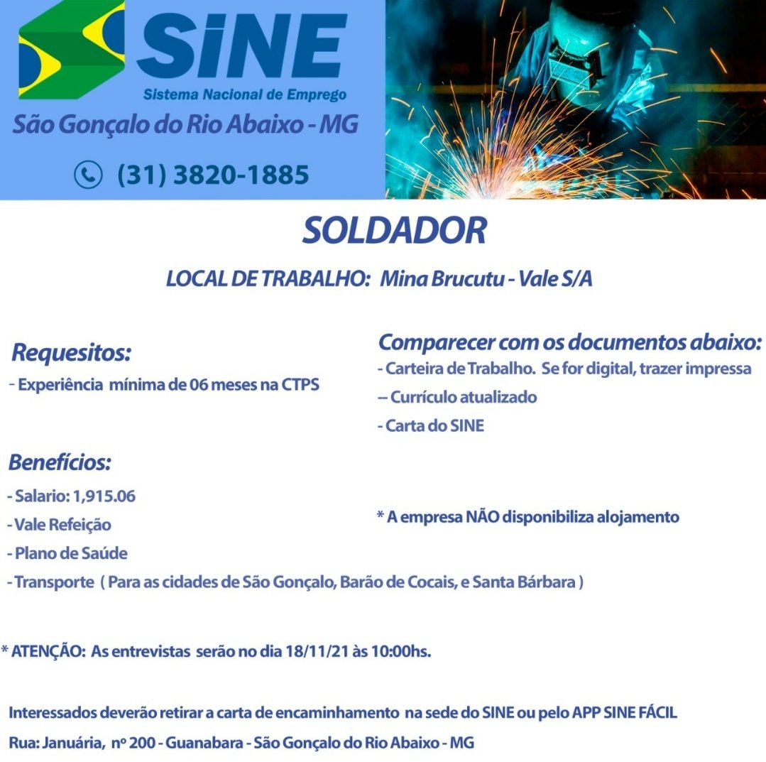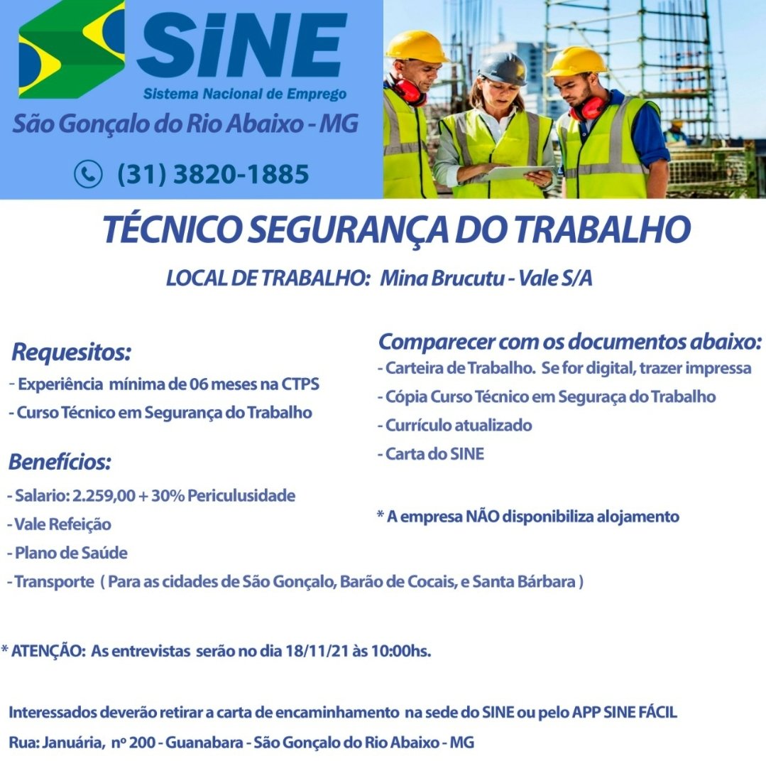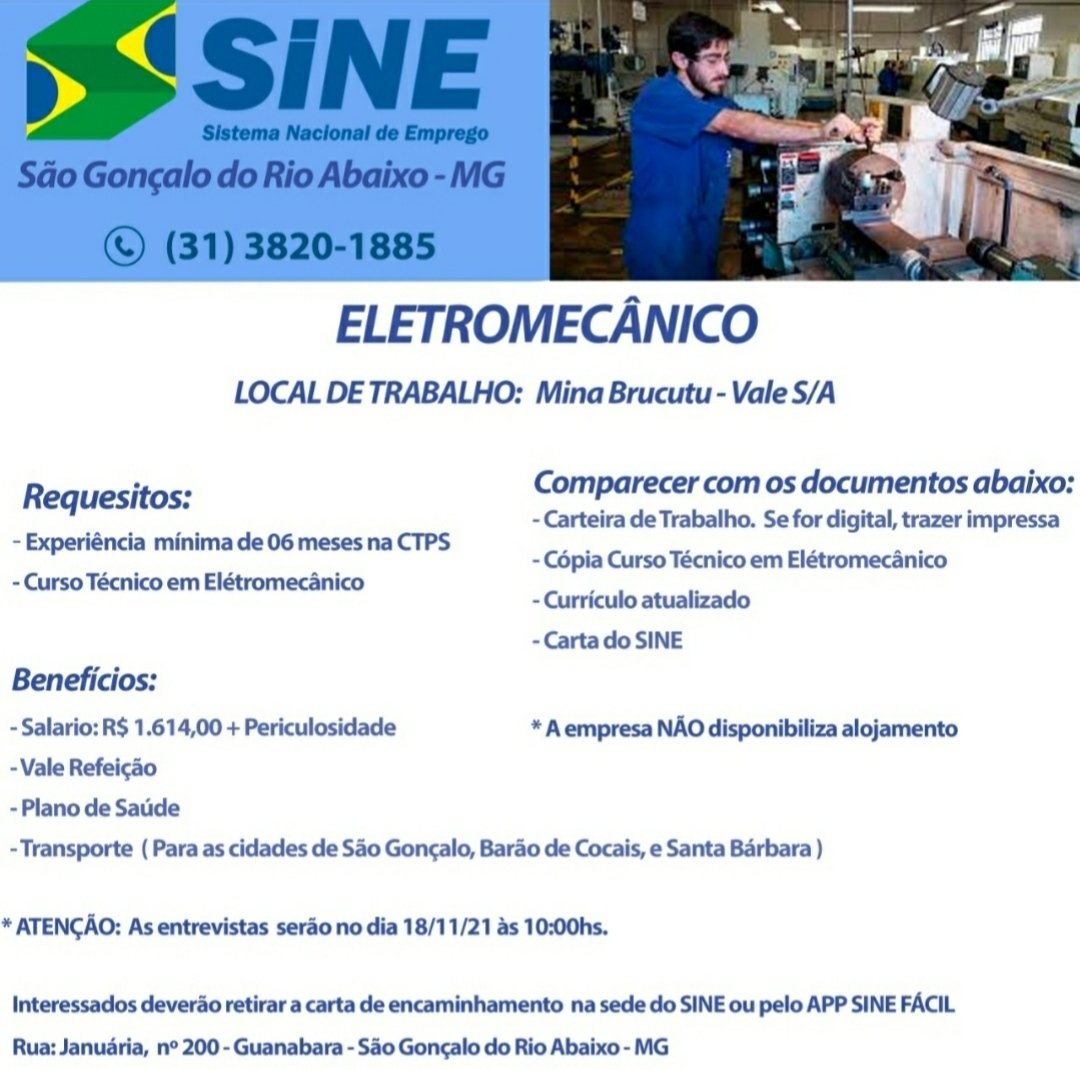 GeralMédio Piracicaba Vagas de Emprego SINE São Gonçalo do Rio Abaixo MG, Empresa VALE SA vagas até 18/11/2021 10 de novembro de 2021 portaldomediopiracicaba@gmail.com Redação