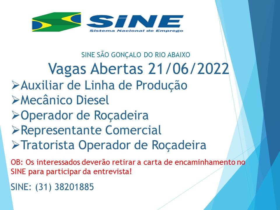 Vagas de Emprego SINE São Gonçalo do Rio Abaixo MG
