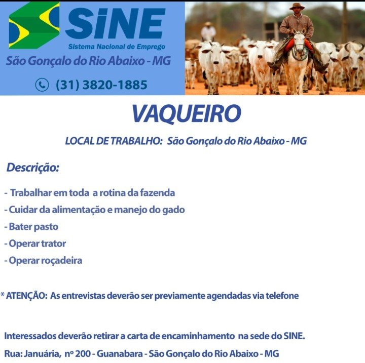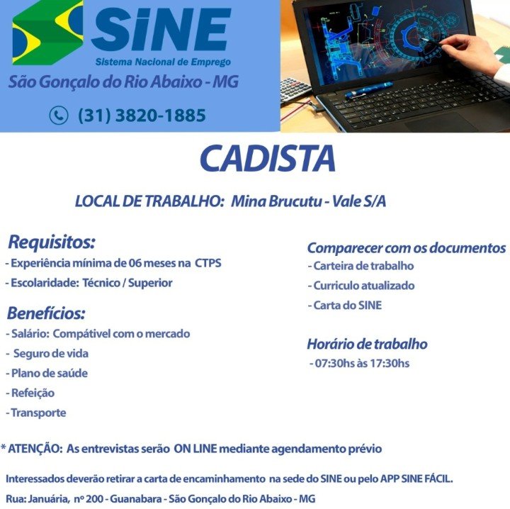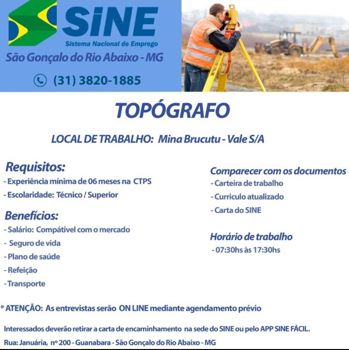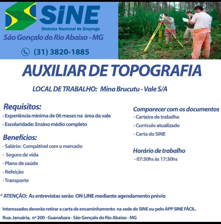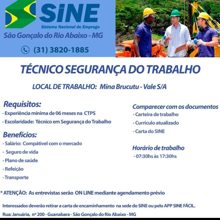 Polícia Vagas de empregos, SINE São Gonçalo do Rio Abaixo MG, 13/10/2021. Boa sorte aos candidatos☛ 11 de outubro de 2021 portaldomediopiracicaba@gmail.com Redação