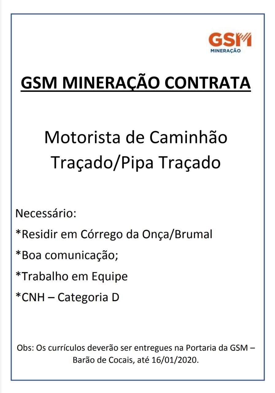 Vagas para motorista de caminhão em Barão de Cocais