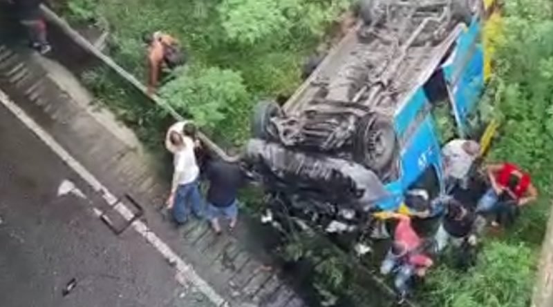 O veículo que transitava na parte superior, passou também pela parte inferior vindo a cair na lateral por sub a parte inferior.