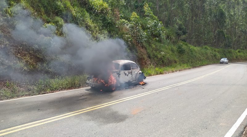 Agora por volta de 12:10hrs um veículo Volkswagen (Fusca) de cor bege placas GRY 7061 de São Gonçalo do Rio Abaixo acabou pegando fogo na estrada que dá acesso ao lixão municipal.