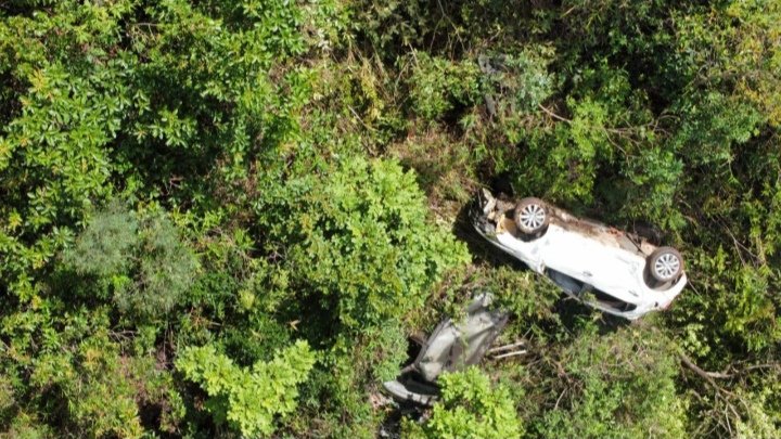 VEÍCULO CAI EM RIBANCEIRA NA SERRA DO ROLA MOÇA (ASSISTA O VÍDEO)