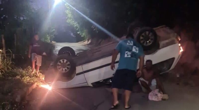 Um veículo Fiat de cor branca capotou descendo um morro que faz a ligação dos bairros Boa Vista e Cidade Nova.