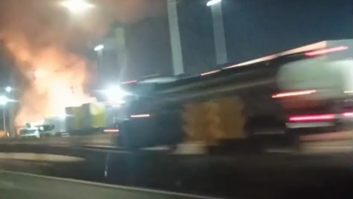 Veículo completamente consumido pelas chamas no meio da via.