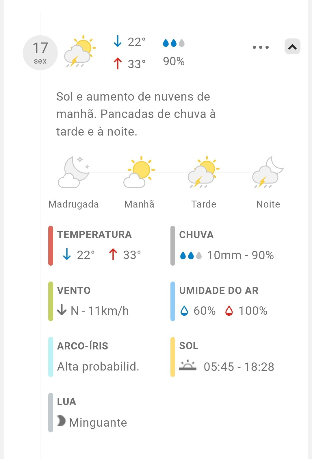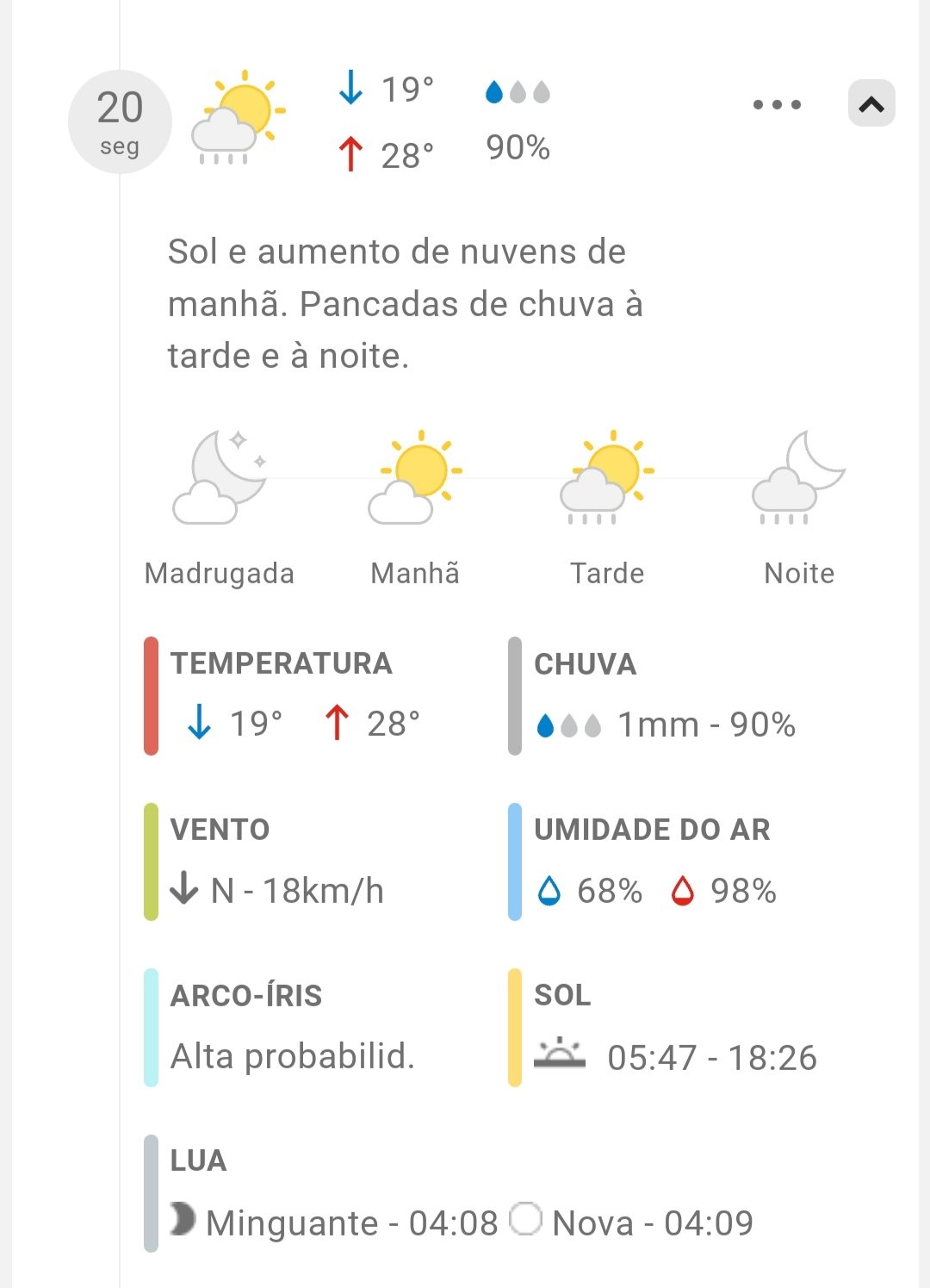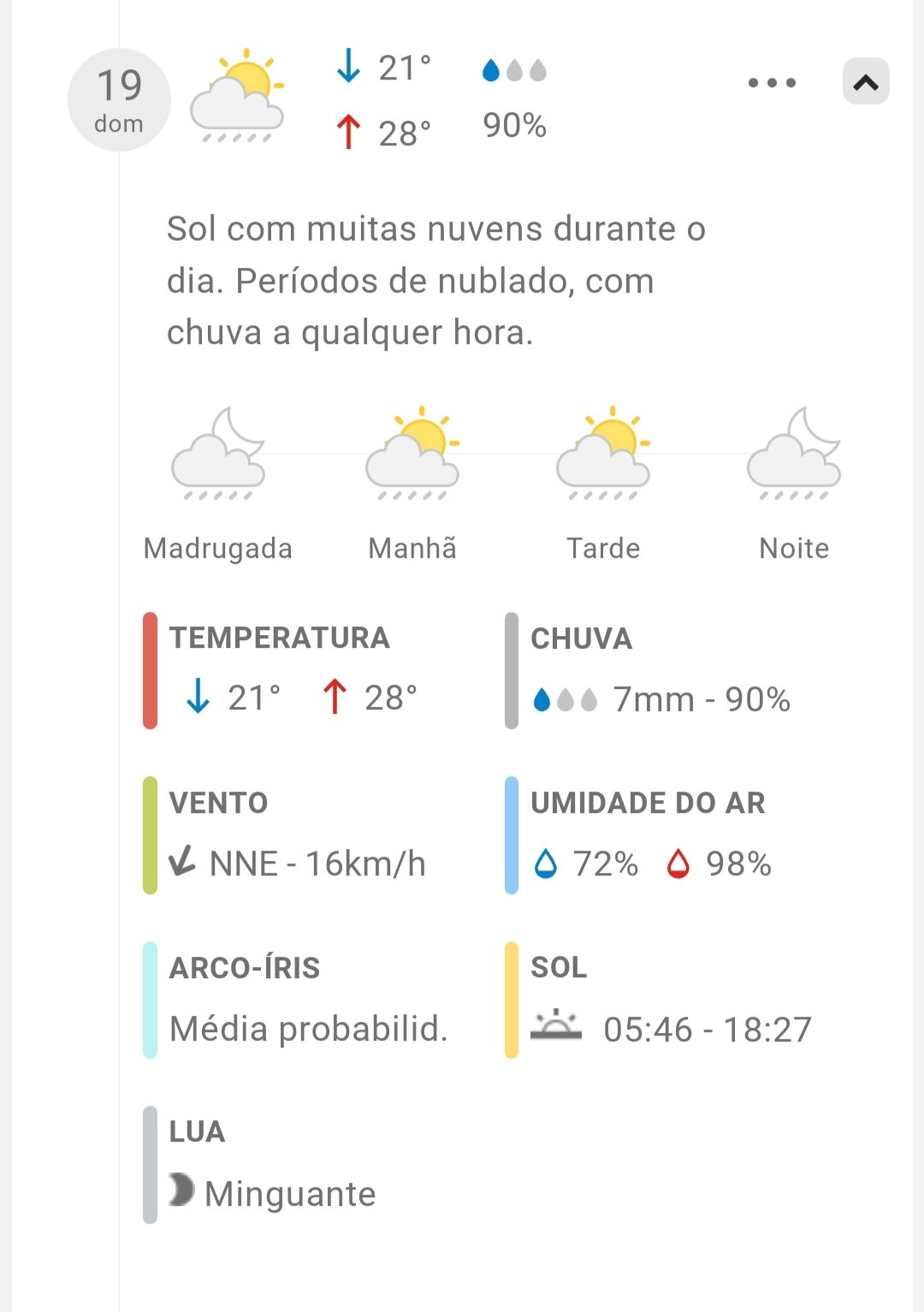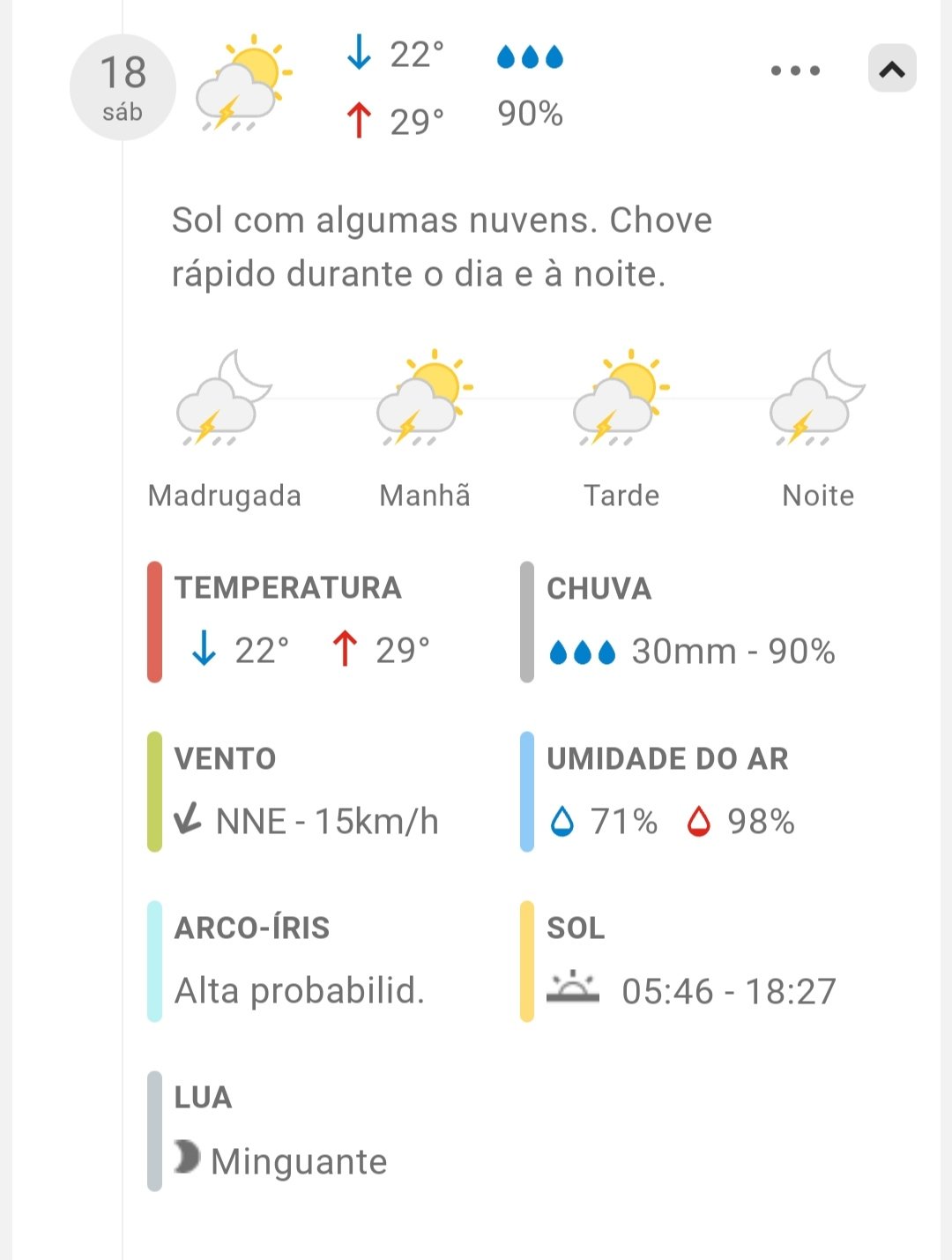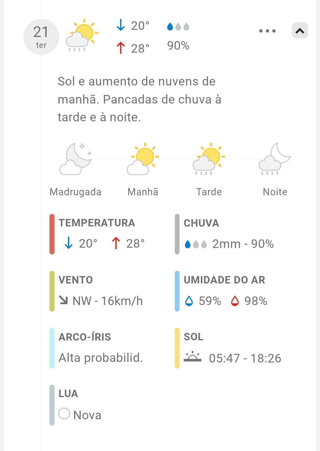 Hoje é terça-feira a noite por volta de 21:34 minutos. Chove no momento e a previsão para hoje é de 10mm. Pois bem!