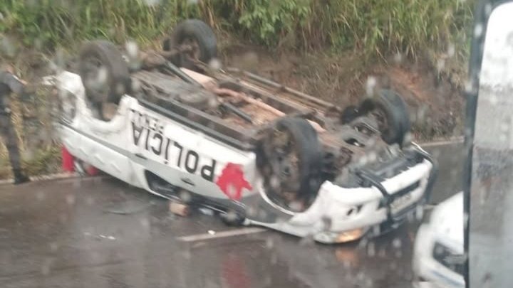 Onde o motorista de uma viatura da Polícia Penal perdeu o controle e capotou na pista.