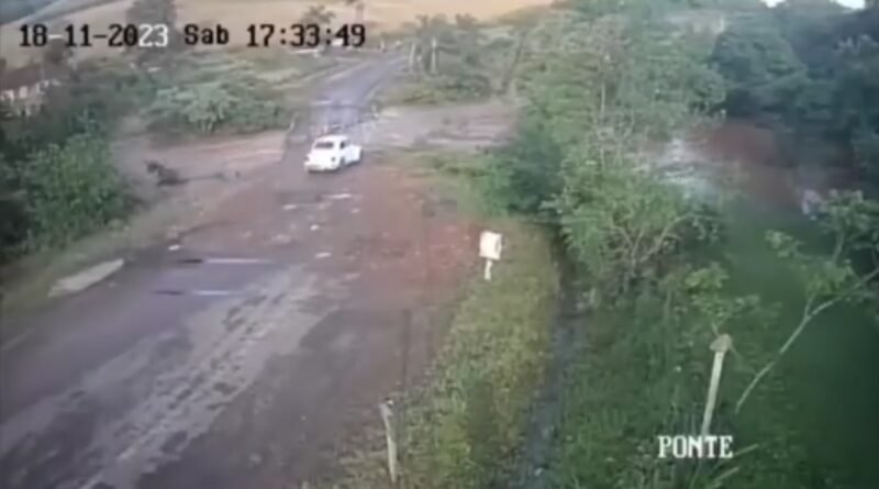 Vídeo: Família é arrastada pela correnteza após Fusca cair em rio no sul do país