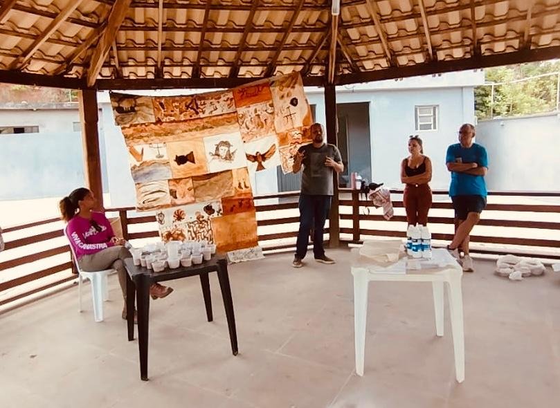 No caramanchão da comunidade de Borges os participantes participaram de uma oficina de Geotinta e Vidro de Areias Coloridas promovida pelo historiador, Danilo Souza e Maria do Socorro Freitas.