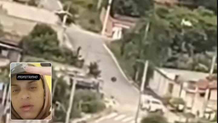 Só que lá bateram de frente com os militares, foi dada novamente voz de prisão para os elementos, mas o MONSTRINHO reagiu à abordagem e sacou uma pistola atirando contra os PMs.