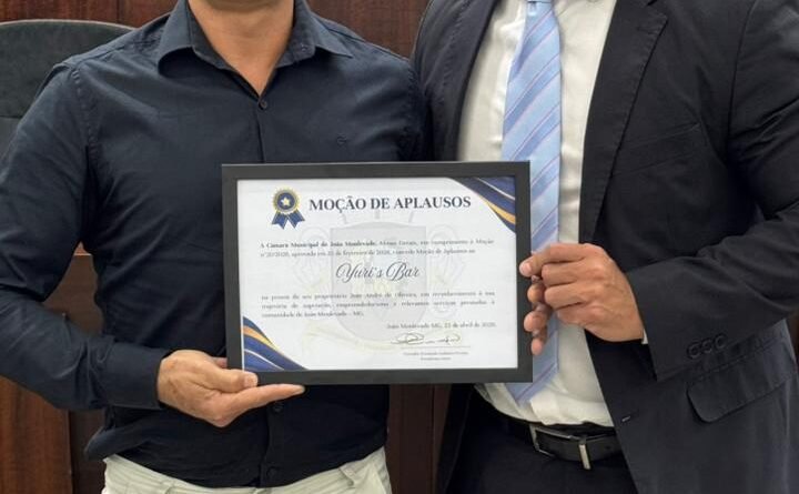 Na noite dessa quarta-feira, 22, a Câmara Municipal de João Monlevade realizou sessão solene para a entrega da Moção de Aplausos ao Yuris Bar, proposta pelo vereador e presidente da Casa, Fernando Linhares (Podemos).