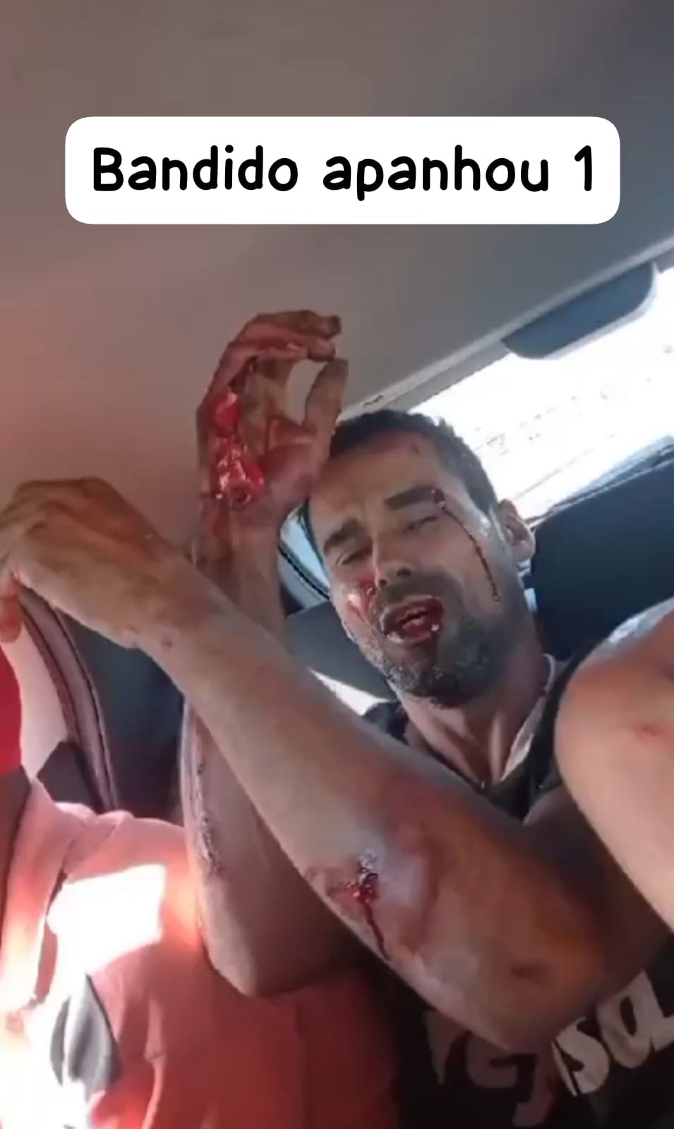 O motorista do carro acelerou e derrubou a motocicleta, haviam quatro homens dentro do veículo, desceram e colocaram os dois supostos ladrões dento do carro e começou a pancadaria, pauladas, pontapés e socos.
